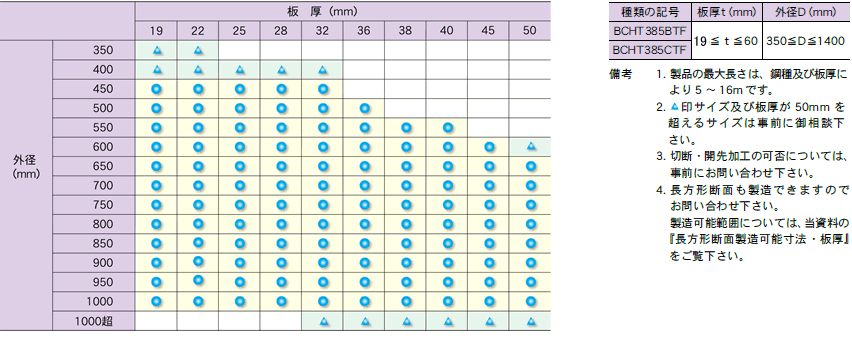 「BCHT385BTF/CTF」の設計指針および溶接施工要領をご要望の際は、お手数ですがお問い合わせ下さい。