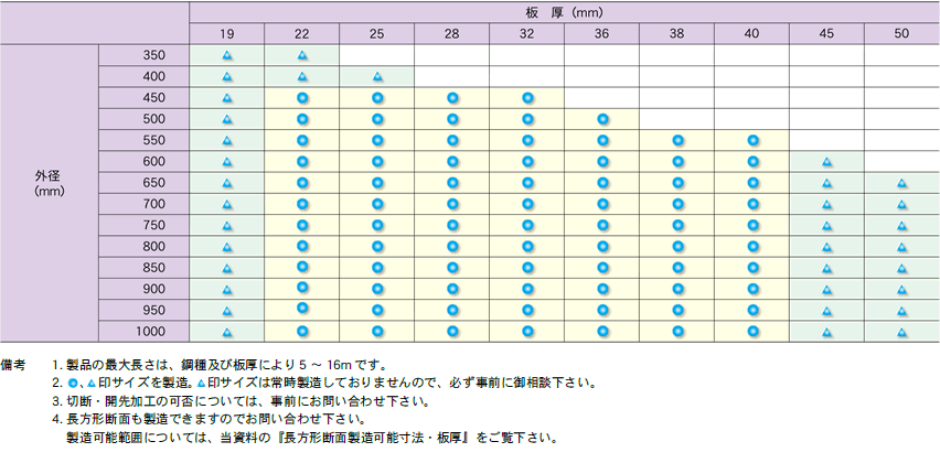 低降伏比(YR80%)、角部のシャルピー値オプション等につきましてはご相談ください。