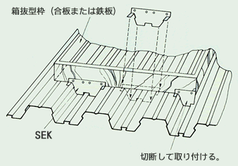 SEデッキの谷溝形状にピッタリと合い、箱抜型枠が簡単に組立可能。