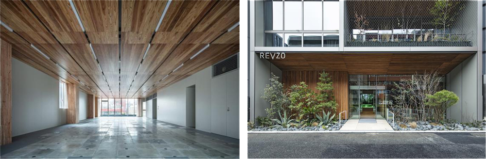 木・鋼ハイブリッド合成スラブ 「e-works+CLT 補強」を採用した木造・木質化オフィスビル「REVZO 新橋」が竣工 日鉄建材株式会社(代表取締役社長:新城晃)と株式会社竹中工務店(代表取締役社長:丁野成人)が共同開発した木・鋼ハイブリッド合成スラブ「e-works+CLT 補強」を採用した木造・木質化オフィスビル「REVZO 新橋」(事業主:中央日本土地建物株式会社)が2月末に竣工しました。 「e-works+CLT 補強」は、日鉄建材の設計・施工合理化ブランド『e-works+(イーワークスプラス)』シリーズの 1 つであり、天井仕上げ材として用いる CLT※(直交集成板)パネルとデッキ合成スラブを組み合わせることで、デッキプレートの型枠性能を向上させる技術です。同物件では、通常スーパーE デッキ EZ75(デッキプレート高さ 75mm)が必要となる設計ですが、CLT による補強効果