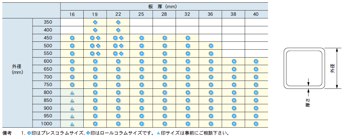 角形鋼管(プレスコラム、ロールコラム)とダイアフラムの溶接には「脆性破壊防止溶接積層法」は適用対象外です。