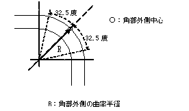 1)角部外側の曲率半径とは、角部外側中心における曲率半径をいう(下図参照)。
