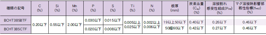 「BCHT385BTF/CTF」の設計指針および溶接施工要領をご要望の際は、お手数ですがお問い合わせ下さい。