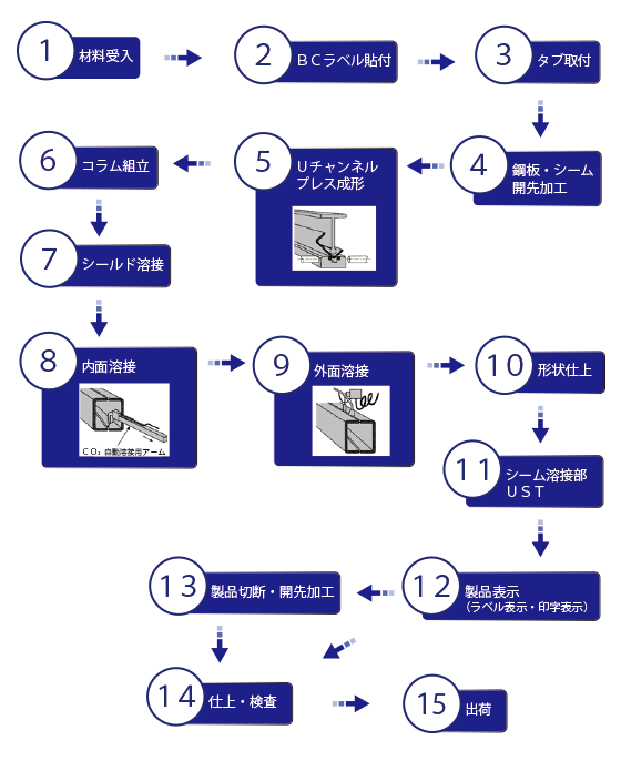 低降伏比(YR80%)、角部のシャルピー値オプション等につきましてはご相談ください。
