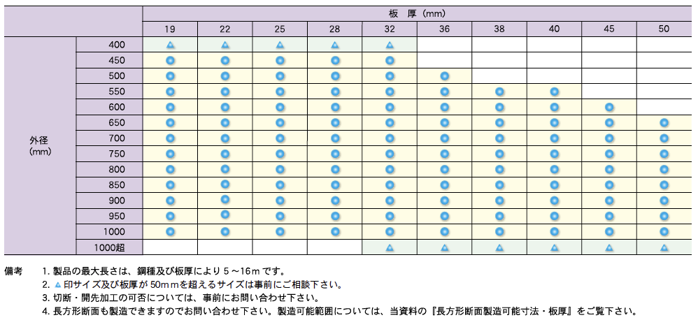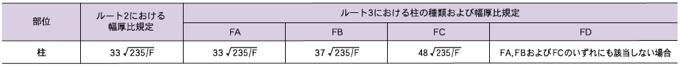 国土交通省告示第593、594、595号に基づく場合 1)耐震計算においては「断面の一部を冷間成形により加工したもの」として取り扱います。 2)幅厚比の規格は以下の通りです。