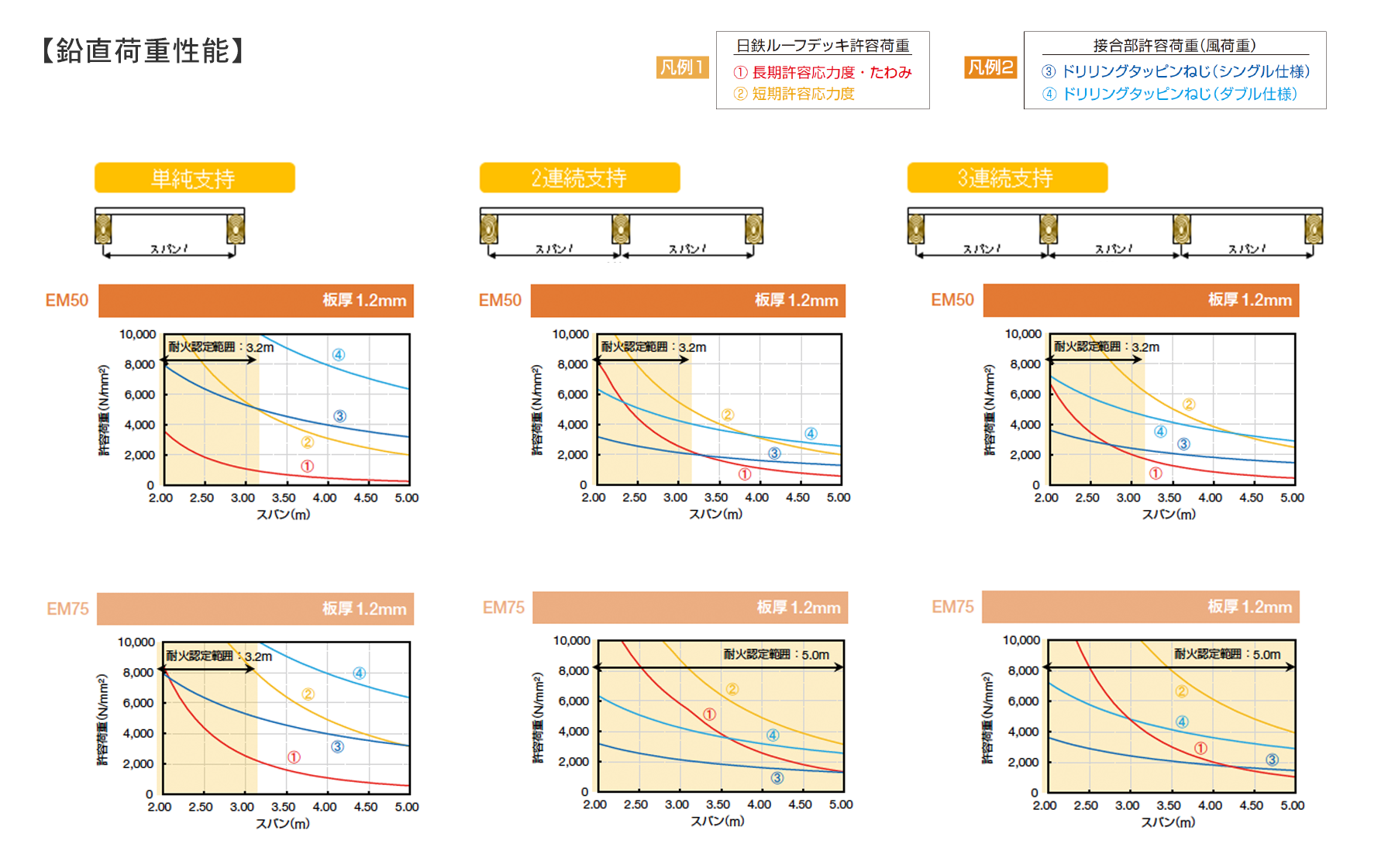 支持条件 | 許容スパン (m) | 日鉄ルーフデッキと 木梁の接合 |