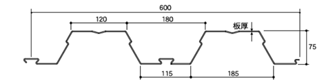 | 亜鉛めっき(Z12・K12)*1 | 亜鉛めっき(Z27・K27)*1 | 断面二次*2 モーメント (cm4/m) |