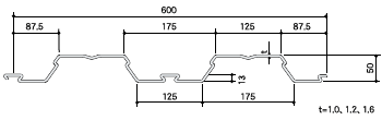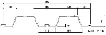 | 亜鉛めっきなし*1 | 亜鉛めっき*2(Z12・K12) | 亜鉛めっき*2(Z27・K27) | 断面二次 モーメント (cm4/m) |