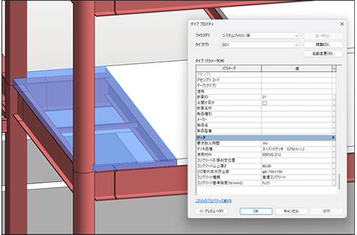| 合成スラブ耐火適合判定 | 合成デッキに求められる耐火条件を判定する 判定した耐火認定番号を床モデルに付与 |