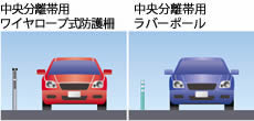 省スペースで設置が可能 現在、2車線道路の中央分離帯に一般的に用いられているラバーポールは、車両の突破を防止する機能はありません。中央分離帯用ワイヤロープ式防護柵は安全性に優れ、また支柱径が細いため省スペースでの設置が可能です。