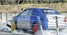 高い衝撃吸収能力 車両が衝突した際に中間支柱が変形して倒れ、車両をワイヤロープで受け止めて衝撃を緩和し、安全に誘導する構造になっています。ワイヤロープ式防護柵は、衝突時の乗員安全性を確保する高い衝撃吸収能力を有しています。
