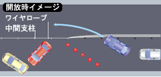 中央分離帯開口部の確保が容易 事故等により車線がふさがれた場合、ワイヤロープを緩めて中間支柱を取り外し、片側交互通行にすることで交通を確保することができます。 早期に交通を開放することにより渋滞の緩和、追突事故の抑止等の効果が期待されます。