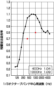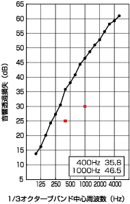 | 残響室法吸音率 | 音響透過損失 | 残響室法吸音率 | 音響透過損失 |