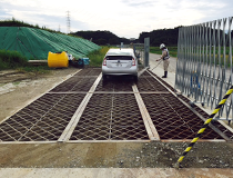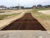 悪路・軟弱地盤・傾斜地の滑り止め・車両の泥落としに最適です。敷鉄板の代用として造成工事の現場や傾斜のある山間部、丘陵部での工事現場などで使用されています。