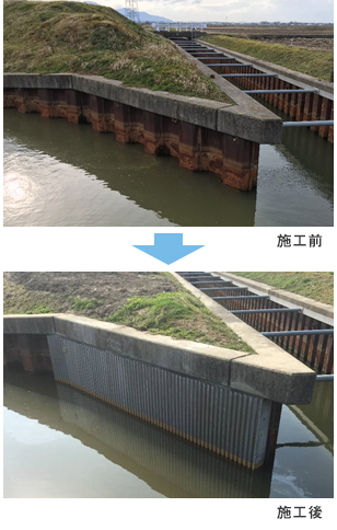 軽量なパネルを使用しているため施工性に優れており、農林水産省による「農業水利施設の補修・補強工事に関するマニュアル 【鋼矢板水路腐食対策(補修)編】(案)」にも当工法が掲載されています。