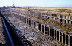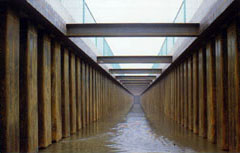 ![]() 切梁式護岸に打設されている軽量鋼矢板 |