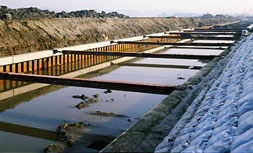 | 護岸は、河岸または堤防を流水による浸食から保護するための構造物で、構造形式によって自立式護岸、切梁式護岸、タイロッド式護岸の3種類があります。 | ![]() タイロッド式護岸施工に使用 されている軽量鋼矢板 |