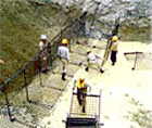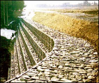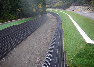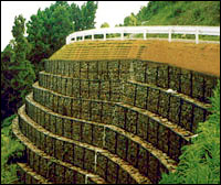 2. 法面擁壁施工直後 (前面植生土嚢袋) |