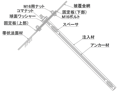 | 帯状法面材 | アラミド繊維挿入ポリエチレン | 目合い50×28mm 幅260mm |