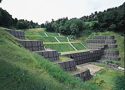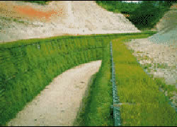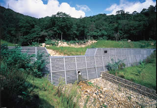![]() 地すべり抑制の押さえ盛土に透水性の高い鋼製自在枠を使用した例 |