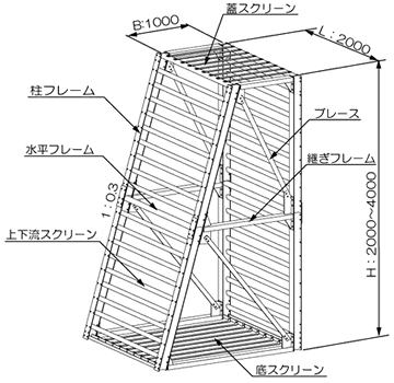 柱・水平・継ぎフレーム 上下流スクリーン ブレース 底スクリーン 蓋スクリーン ジョイントプレート |