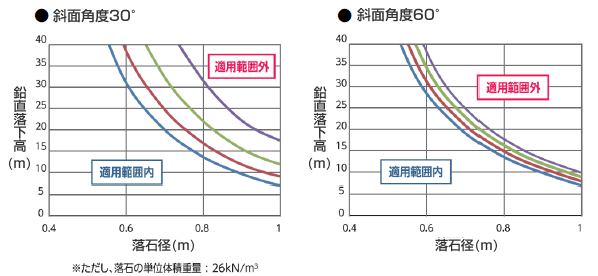 捕捉対象となる落石の径及び落下高さより、最適なタイプをご検討いただけます。
