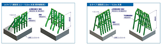 鋼製スリットダムAB型(改良B型)|格子形-2000Cシリーズ|鋼板セルえん堤|ワイヤネット工|