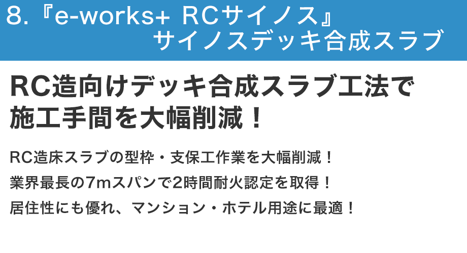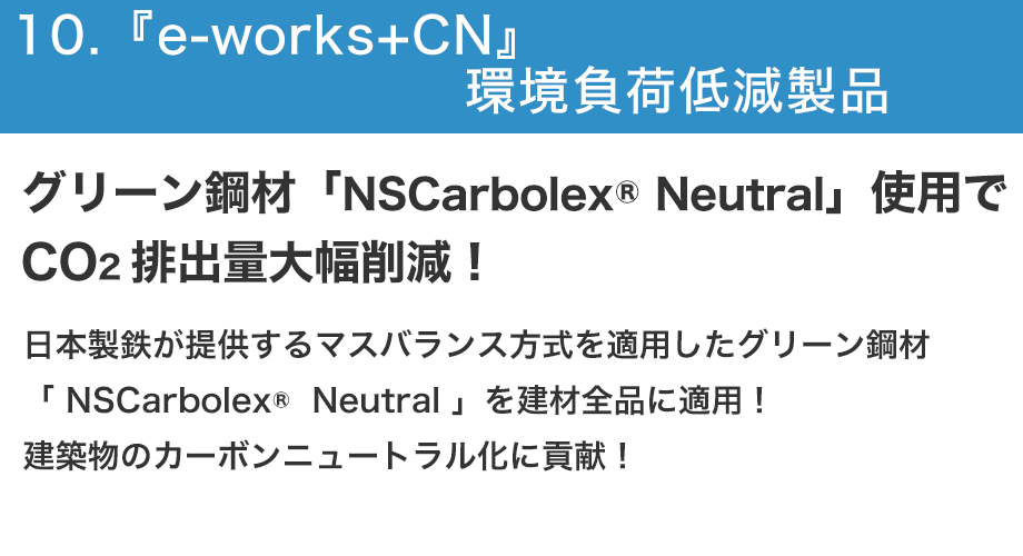 『e-works+』とは、日鉄建材の建築商品に関する設計・施工合理化工法の総称であり、