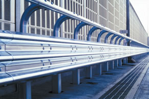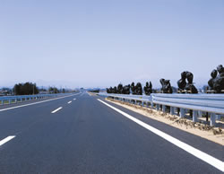 Guardrails are guard fences composed of corrugated beams. They have proper rigidity and toughness to resist the impact of vehicle collisions through the tension of the beams and deformation of the supports. Conventional double-corrugated beam type and high-strength three-corrugated beam type are available.