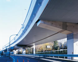 Silent Road is an acoustic system for the underside of elevated roads. This product is designed to control the noise under the elevated road, such as the traffic noise reflected by underside of the elevated road scattering over to the surrounding area, and noise transmitted through the surface of the elevated road. Breakthrough sound absorption has been achieved by a combination of porous louver, high-absorption polyester and corrugated steel sheet.