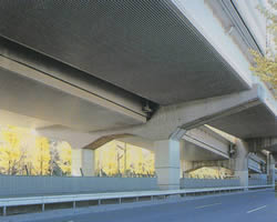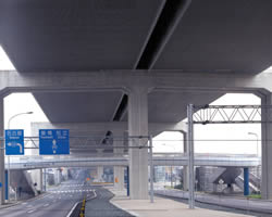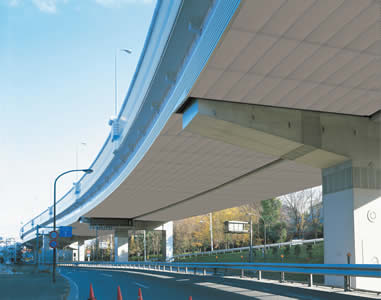 The panel-type Silent Road is an acoustic panel designed to control traffic noise that is reflected by the underside of elevated roads. The panel-type Silent Road can absorb 95% of the reflected traffic noise from the lower road.