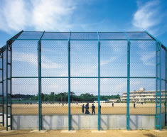 Main posts are arranged at 3-meter intervals with no raker, allowing efficient use of land.