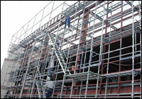 くさび緊結式足場。住宅および中層ビル工事に最適な足場です。 仮設工業会認定品