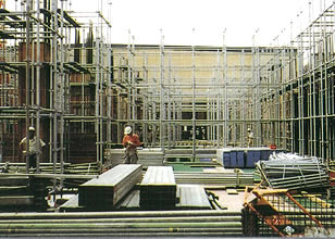 ![]() 物流倉庫となる建築物の施工状況。 ペコビームの併用でステージ中間に開口部を設けている |