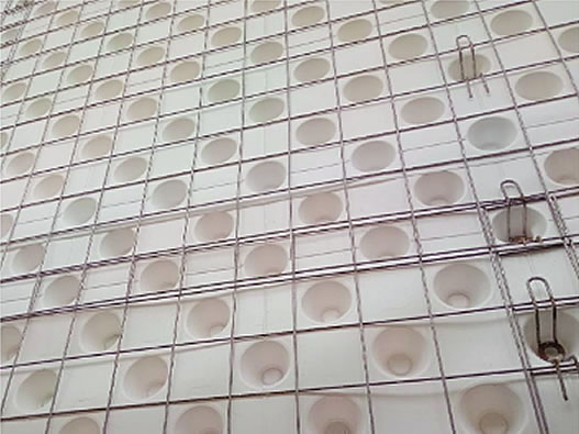 TAKOHOシートのカップ部分にモルタルが均一に充填されるため、軽量モルタルの収縮などによるクラックを低減する効果が期待できます。