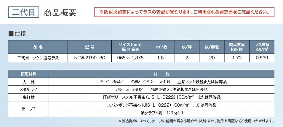 カ骨とラス材に防腐食性の高い亜鉛メッキ材を使用。