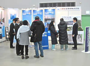 2月27日(水)から28日(木)まで仙台 夢メッセみやぎで行われた東北/防災・減災ソリューションフェアに出展いたしました。この展示会は東北経済復興の一助になればという思いと、東北地区が災害に強い地域になることを願って開催されました。当社もこの展示会に参加することで、東北地区の皆様のお役に立てれば幸いです。 当社は「セーフガードタワー」(津波避難タワー)や「マリンバリア」(パネル式防潮堤)、「ノンフレーム工法」(斜面安定工法)などの防災・減災に役立つ新商品をご紹介いたしました。