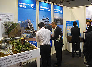 当社は「セーフガードタワー」(津波避難タワー)や「マリンバリア」(パネル式防潮堤)、「ノンフレーム工法」(斜面防災工法)などの防災・減災に役立つ商品をご紹介いたしました。多くの方々がご来場くださり、当社の防災商品の模型やバナーを興味深くご覧いただけました。 ご来場いただき、誠にありがとうございました。