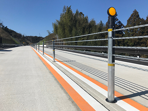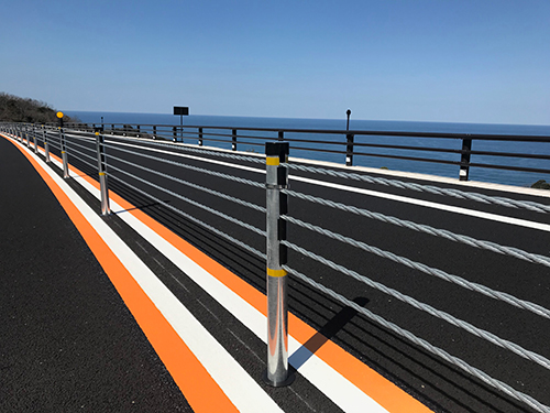 多伎朝山道路(山陰道)にワイヤロープ式防護柵(LD種)が採用
