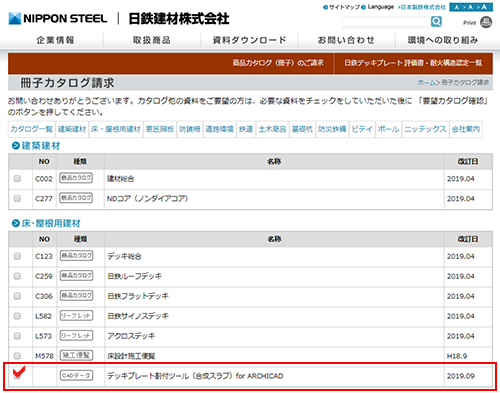デッキプレート割付ツール(合成スラブ)for ARCHICAD にチェックを入れ、入力フォームに進んでください。