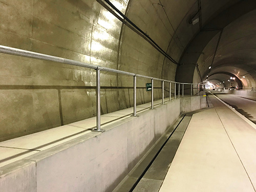 開通区間の中で当社の防護柵が採用され、土工部にはガードレール、トンネル監査路にはハンドレールが設置され、道路通行者・管理者の安全が守られています。