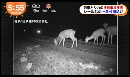 2019年の年末に、各ニュース・情報番組にて当社の誘鹿材「ユクル」について放送されました。 今秋関西地方にて頻発した電車とシカの衝突事故が増えている件で、紙面掲載された内容が各メディアの目に多く留まり、多くのテレビ局にて取り上げていただました。