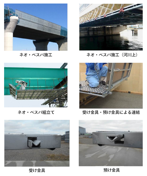 日鉄建材株式会社(以下、日鉄建材)は、このたび公益社団法人発明協会が主催する令和3年度関東地方発明表彰において、ネオ・ベスパ(受賞名称:安全性・施工性に優れた吊り足場)に関する発明が「発明奨励賞」を受賞しました。 ネオ・ベスパは道路橋、橋梁などの老朽化が進む中、橋桁などの維持管理のための点検・補修作業などで使用する安全性かつ施行性に優れたパネル式の仮設吊り足場として、2014年11月に商品化されました。当該商品は、橋桁の下が河川や道路など施工現場の条件により地上から作業足場が組み立てることができない場合に、橋桁裏面部よりチェーンにてパネルを吊り下げ作業床として使用する特殊足場です。