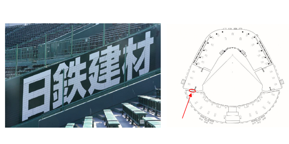 阪神甲子園球場にお越しになられた方、また春の「選抜高等学校野球大会」や夏の「全国高等学校野球選手権大会」のテレビ放映の際には、野球選手、高校球児への応援に加え、ぜひ1塁アルプス席とライト外野席間の壁面の「日鉄建材」にもご注目ください。