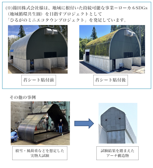 日鉄建材株式会社(代表取締役社長:美濃部慎次)のアーチ形コルゲートが、篠田株式会社(代表取締役社長:篠田篤彦)が岐阜県ひるがの高原に建設したエコをテーマにした自立型ハウスに採用されました。コルゲート採用の要因としては、コストを安く抑えられることや、柱・梁を必要としないアーチ構造のためハウス内の空間を広く確保し有効利用できることが評価されました。
