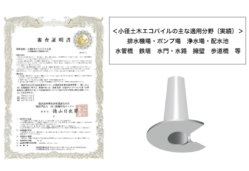 今回の建設技術審査証明の更新による「小径NSエコパイル工法」の土木分野での適用拡大は以下の通りです。