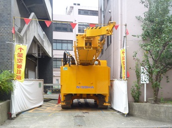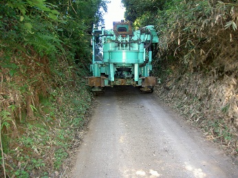 隘路搬入のあるプロジェクトで多くの採用実績があります。ゴムキャタピラ仕様のため路面を痛めることがなく自走が可能です。また、リーダー組立はクレーンを必要ない自立方式のためリーダーを折り畳んだ状態で搬入ができます(詳細の搬入条件は、弊社にお問合せ下さい)。