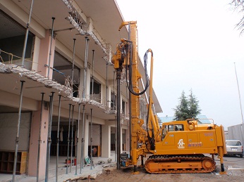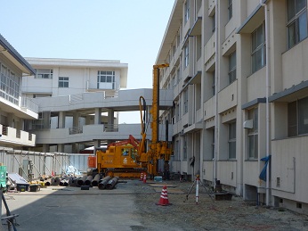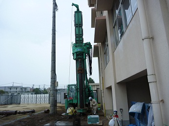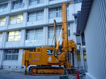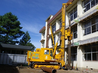 耐震補強の基礎杭として多くの採用実績があります。近接施工、狭小地、隘路搬入といった制約下での施工が可能です。また、NSエコパイルの引抜支持力を考慮することでコンパクトな基礎を構築することができます。低振動・低騒音の工法なため、施工に伴う騒音を低減できます。